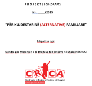 Tiranë, 16 Korrik 2025 – CRCA-ECPAT Shqipëri njofton se ka dorëzuar zyrtarisht projektin e parë të ligjit “Për Kujdestarinë (Alternative) Familjare në Shqipëri ” – një iniciativë ligjore historike për mbrojtjen e fëmijëve pa kujdes prindëror dhe të atyre që ndodhen në situata të dhunës në familje.