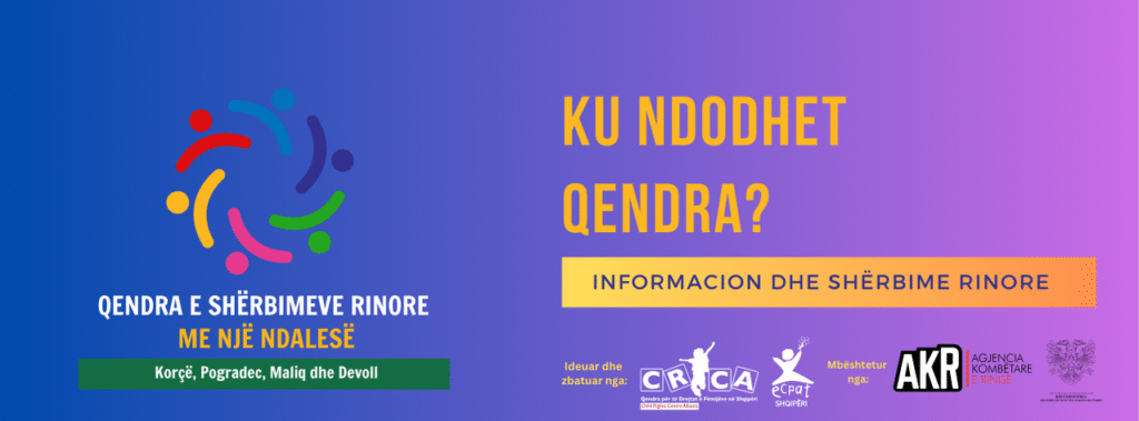 QENDRA E SHËRBIMEVE RINORE është një shërbim model unik, që sjell në një vend të vetëm të gjitha shërbimet publike dhe ato të OSHC-ve për të rinjtë dhe të rejat, për të promovuar kujdesin, mbështetjen dhe fuqizimin e të rinjve për një jetë, punësim dhe karrierë të suksesshme.